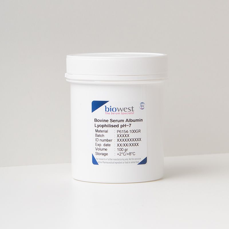 Lyophilized BSA is a convenient form of protein that is easy to handle and store. It has a long shelf life and can be reconstituted in a buffer of choice for use in various applications such as enzymatic assays, ELISA tests, and Western blotting.